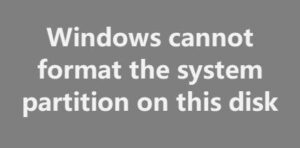 Windows Cannot Format The System Partition On This Disk